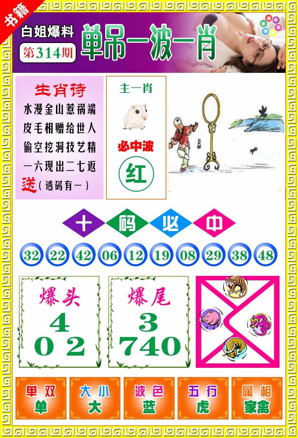 | 314期:必中五肖: 龙羊猴马狗 |